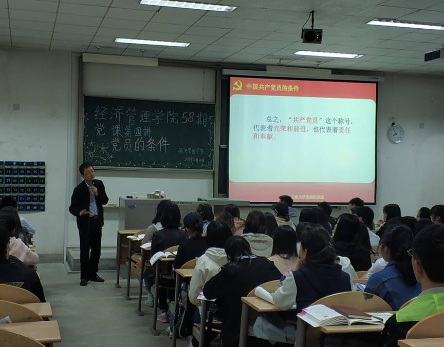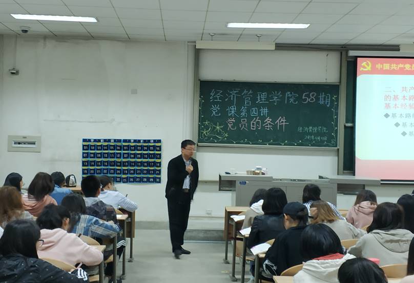 于2019年4月11日7:00在教2-111开展了第五十八期党校党课讲座。本次党课邀请到姜冰清老师对各级有入党意愿的同学进行了思想指导与培训。