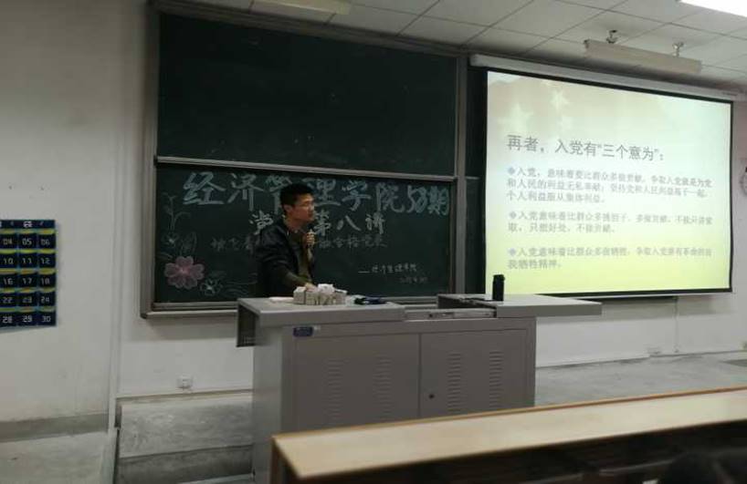 赵伟奇老师从树立正确的入党动机、自觉接受党组织的培养、严格遵守入党程序,以实际行动做一名合格党员四个方面讲解了本堂课内容,第一个方面老师讲到:思想上的问题是最重要的问题,树立正确的入党动机十分重要,并且和大家讨论了去年大热的电视剧《人民的名义》,让同学们明白一定要树立正确的入党动机,否则将辜负自己,辜负人民。紧接着,赵老师详细阐述了学生常见的入党动机,得出总结:正确的入党动机是献身共产主义事业,更好的为人民服务。第二个方面,树立了正确的入党动机,也要自觉接受党的培养,同学们应积极参与党课的学习和相关活动加强理论学习,积极对党组织进行思想汇报。第三个方面是严格遵守入党程序,赵老师教导同学们,不要想着走捷径,通过和老师拉进关系方便入党,入党有着非常严格的程序,同学们需要接受每一步的学习和考核才能成为一名党员,同学们应正确对待党组织的考察,考察不是一时的考察,而是终身的考察,入党积极分子应当时刻严格要求自己,不断地向党组织靠拢。第四个方面:从实际行动中争做合格党员,赵老师讲到,学生的首要义务是学习,但同时也要积极参与课外活动,从日常小事做起,比如考试不作弊,不与同学们发生冲突,不和社会闲杂人等交往过密,团结同学,尊敬长辈,这些虽是小事,但对于一名学生来讲,做好这些就已经向党组织迈进了一大步,同学们认真思考积极讨论,在热烈的掌声中结束了本节课的学习。