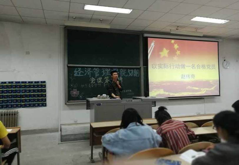 分党校于教二111教室进行了第八章理论授课,本次授课由赵伟奇老师主讲,授课内容为《放飞青春梦想,争做合格党员》,同学们认真学习,热情高涨。