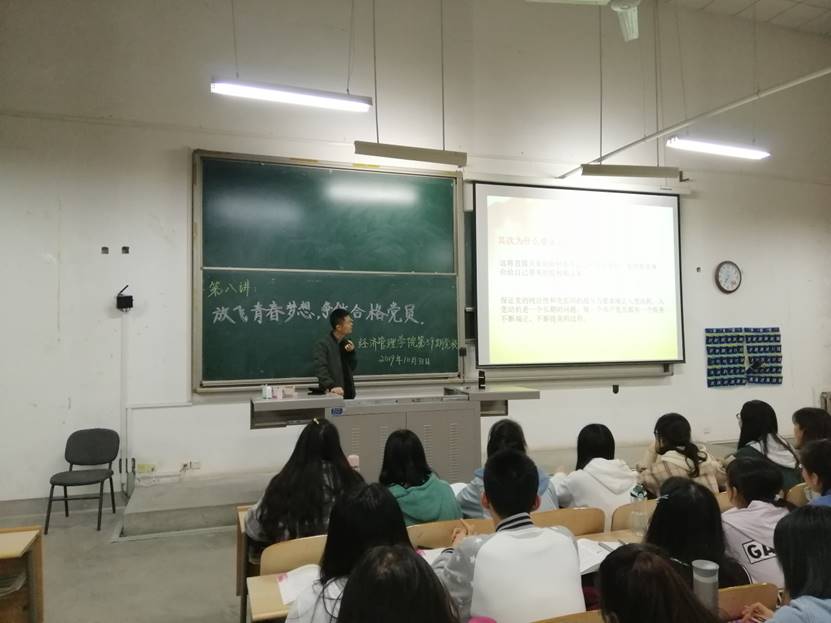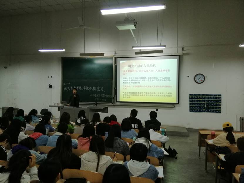 第59期党校于教3-217教室进行了党课第八讲理论授课,为了进一步加深入党积极分子对党的理解和认识,提升党校学员的思想高度,本节党课由党委组织部赵伟奇老师为学员们以《放飞青春梦想,争做合格党员》为主题展开授课,党校250余名学员参与。