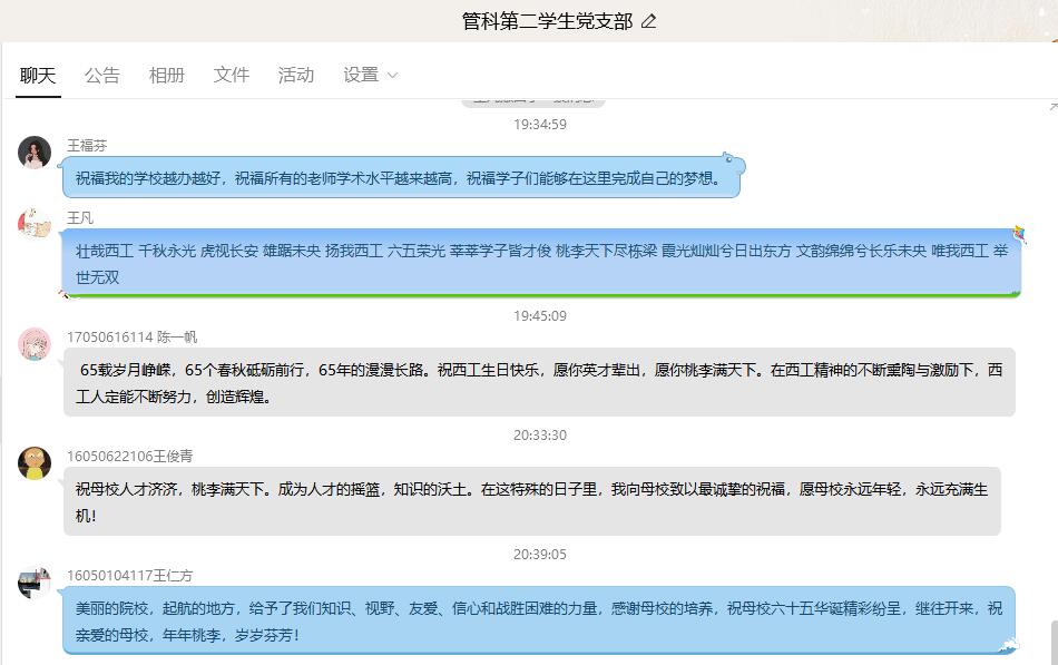 活动最后支部书记侯剑波进行总结发言,他强调校庆活动的举办是为了让每一位西工学子能更好的了解学校,铭记历史,以史为镜,更好地进步,不负学校的培养。