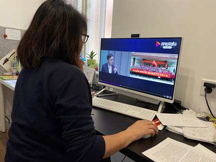 陕西省委宣传部制作推出了理论宣讲栏目《理论宣讲面对面》,首期《疫情大考彰显中国制度优势》于4月15日在学习强国上线。商务信息系组织全体教师进行了观看学习。因为疫情影响,此次学习由老师自行在学习强国APP或网站学习。