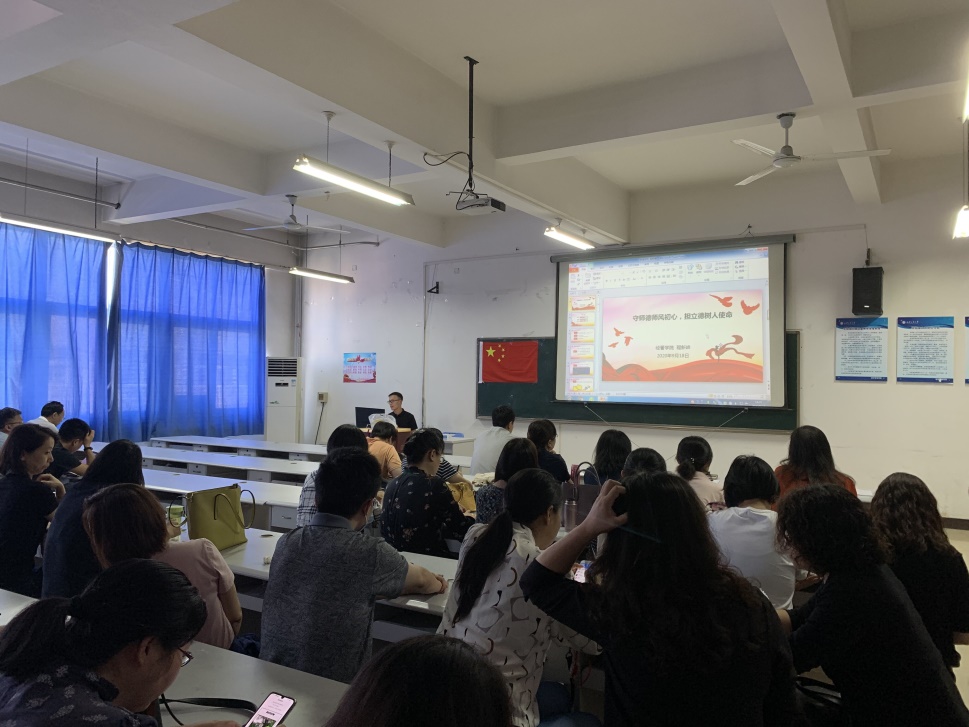 举行师德师风建设专题讲座。学院党委副书记程新峰以“守师德师风初心,担立德树人使命”为主题向全院教师进行了专题讲解。