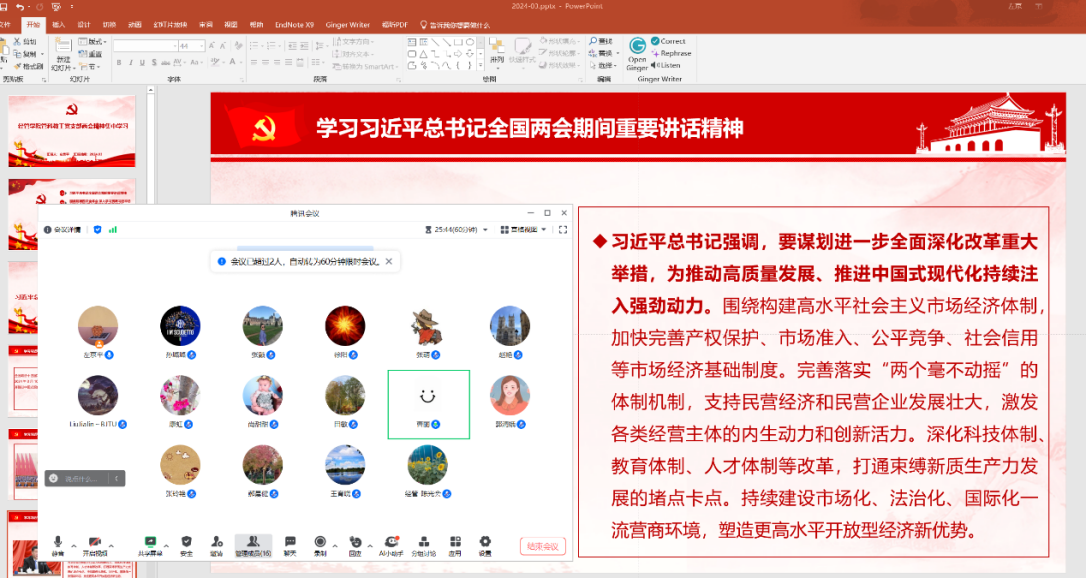 全体党员深刻认识了两会精神的重大意义,汲取了奋进力量,为教学和科研工作的结合提供了新的视角和方向。