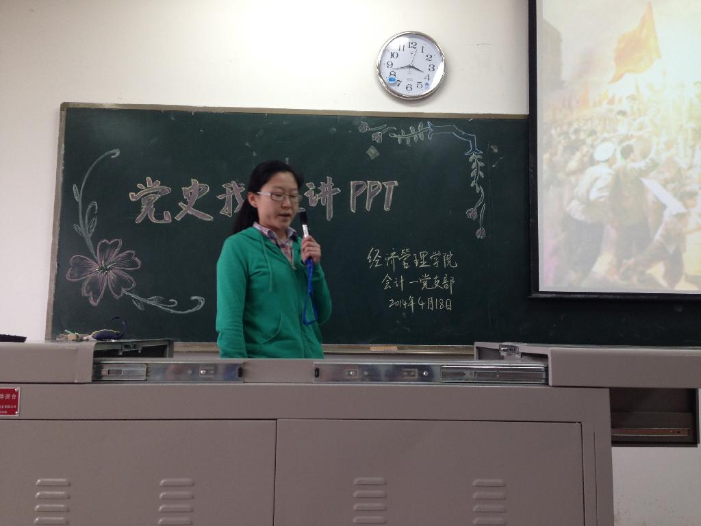 会计第一学生党支部以“党史我来讲”为主题的支部活动,于2014年4月18日在教3-201如期举行。本次活动支部的14名党员以及13级的会计5、6班参加。