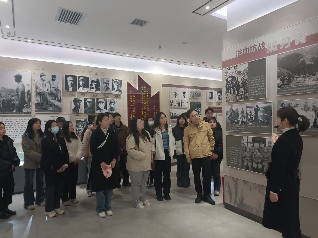 八路军一二零师抗日誓师纪念馆的一件件历史实物,一张张照片激发了师生们的爱国心,强国志。大家在八路军一二零师抗日誓师纪念碑前面向党旗举起右拳,在支部书记邵欣的带领下重温了入党誓词。