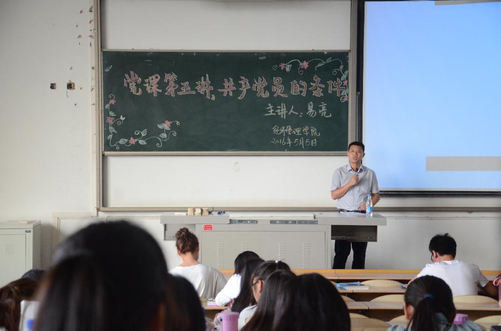 党课伊始,易老师以简单的自我介绍开始了本次课程的讲解。本次课程主讲内容为《共产党员的条件》,易老师从思想到实践对党员做出的详细而严格的要求。首先,易老师结合自身工作经验,谈到成为一个党员应该具备的基本资格,强调要认真学习党章,不可忽视细节。随后,易老师从党章出发,结合教材,要求入党积极分子要树立正确的思想。同时强调了学习的重要性,为入党打好基础。最后,易老师对入党的流程进行了解说,让在座党课学员熟悉了入党过程,这也使全场入党积极分子深受教育,入党是一个严肃而认真的过程,必须认真对待。经过了近一个小时的讲解,此次授课圆满结束,在座全体党课学员对易老师的精彩授课给以了热烈的掌声。