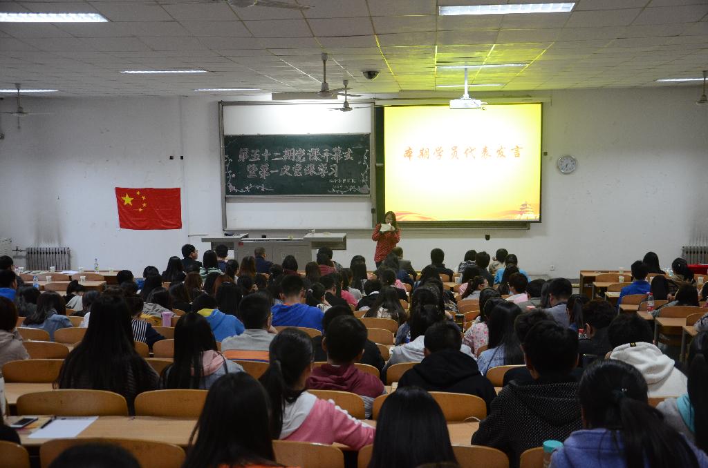 第五十二期党课培训开学典礼与第一次的党课培训。出席此次典礼的有党委书记曲敏、党委副书记程新峰,团委书记冯川川,以及各个学生支部书记。第五十二期全体党课学员及党员辅导员参加此次会议。