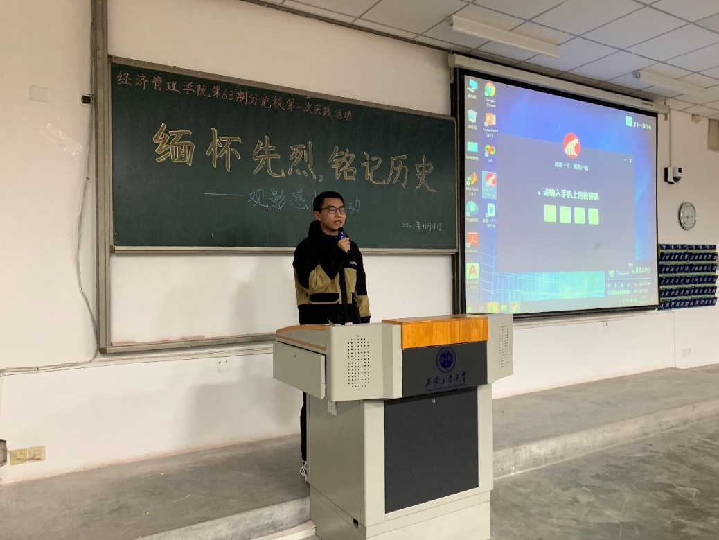 第63期分党校第一次实践活动“缅怀先烈。铭记历史” 观影感悟活动在教1-204成功举办,党校200余名学员参与本次观影活动。