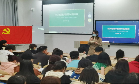 第66期党课积极分子培训班第一讲“学习党的历史,铭记党的光辉”于教2-101顺利开讲,工商第三学生党支部书记侯剑波为120余名党课学员进行指导及授课。