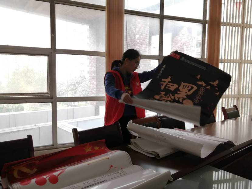 早晨8:30全体志愿者于校门前集合,在青年志愿者协会成员的带领下前往社区。到达社区之后,社区活动负责人将七名志愿者分为三组,前两组分别前往空巢老人家中,帮助老人打扫家庭卫生,擦桌子、扫地、拖地…并与老人交流谈心,干净整洁的房间充斥着爱心与温暖。其余三名志愿者前往社区管理中心帮助搬运海报,对其进行归类并摆放整齐。秋风和煦,志愿者们也热情高涨,踌躇满志的完成了自己的任务。