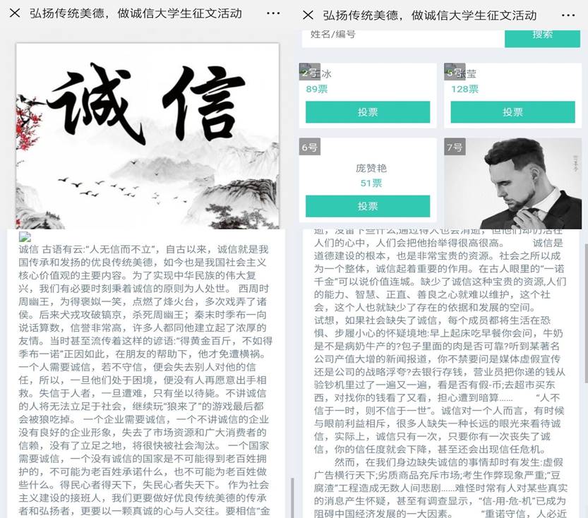 此次主题教育活动分为三个部分,第一个环节是525日社团在经纬广场摆摊,通过让全校学生在横幅上签字来达到宣传的目的。其次是527日发布网上征文比赛,经过前期的准备和拉票,最终评选出三名得票最高的同学,以达到进一步宣传教育的目的,最后于64号,在教2——204举办诚信演讲比赛,通过选手们现场激烈角逐,层层选拔,最终从严格的评分制度中涌现出六位表现优异的同学,网上征文比赛和演讲比赛共同进行颁奖。