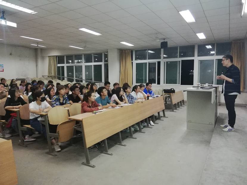 17级辅导员、科协指导老师王轩对64名学生干部进行授课。