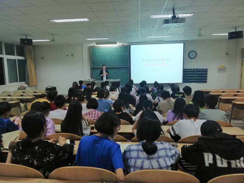 课堂伊始,王轩老师以办公自动化培训为主题,为全体学员讲授excel实用办公技能,指出学习工作中这一技能的重要性与必要性,举出实例引人入胜。紧接着具体指出excel多项功能,逐一耐心讲解,同时与各学员进行互动,结合身边实例进行讲解。通过王轩老师对办公自动化的细节解读,在场同学对其有更为清晰的认知。随后,各位学员一起学习有关函数及图像方面的功能,老师提出可能存在的问题并进行现场操作演示,完美展现出许多平时不为人知的办公技巧,全体学员办公技能得到进一步提高。最后,老师对全体学生干部提出期望,希望大家不断总结经验,努力提升自己。