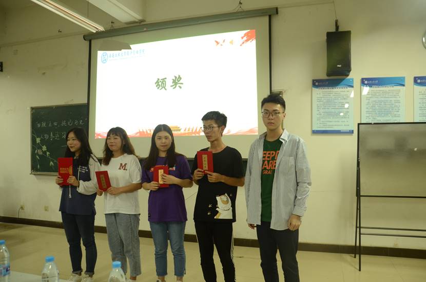 活动伊始,主持人李慧同学追溯过往,回顾历史,阐述了本次活动的具体意义,强化了广大学生干部对五四运动及建国历史的了解学习,从而使同学们更好的感悟五四精神。随后,各成员以小组为单位进行海报展示及介绍,展示过程中,各参赛队员对海报每一个细节做了解释,同时阐述了自身所感所悟,加深了自身的爱国情怀,每一位参赛选手的慷慨激昂的讲述,渲染了现场气氛,更好地为此次活动增光添彩。紧接着,评委对每一组学员的表现做出评价与打分,同时为优胜小组颁发荣誉证书。最后,优秀作品在展板上向同学们展出。