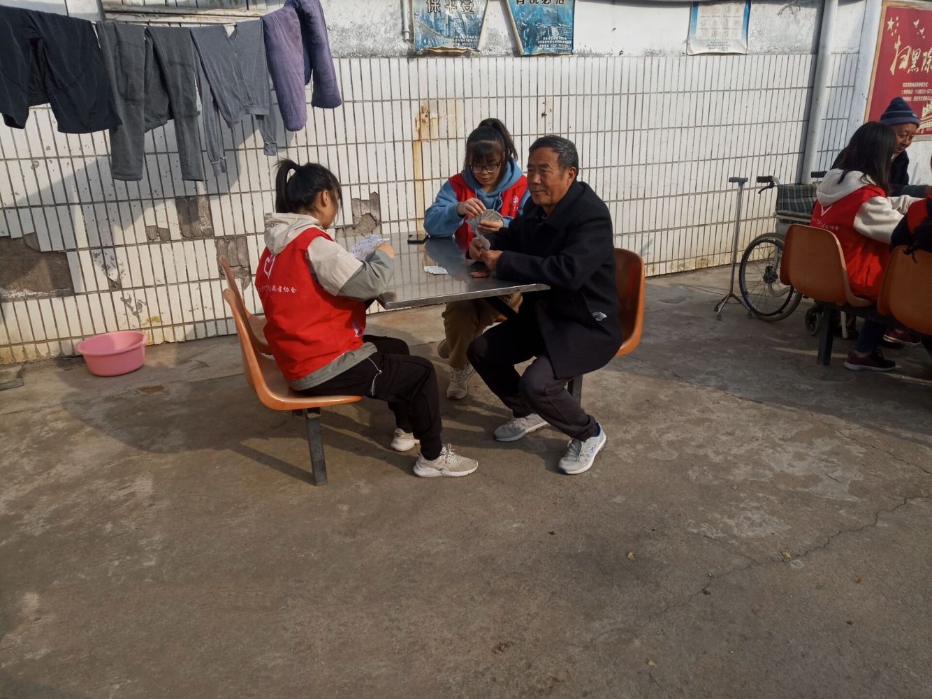 此次活动人员共分为两组,一组志愿者于敬老院第一层楼展开志愿活动,另一组志愿者于敬老院二层楼展开志愿活动。志愿服务期间,同学们给老人清理房间的杂物与垃圾,帮老人扫除每个地方的灰尘,与老人促膝交谈、寒嘘问暖,聆听老人讲自己以往的故事。敬老院因志愿者们的到来,弥漫着浓浓的温情。