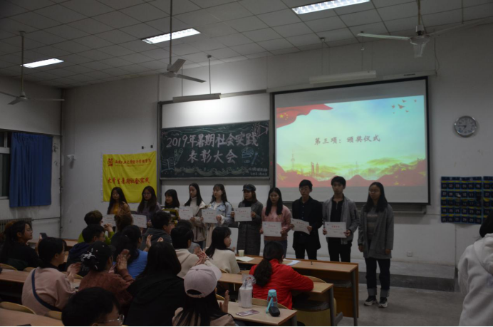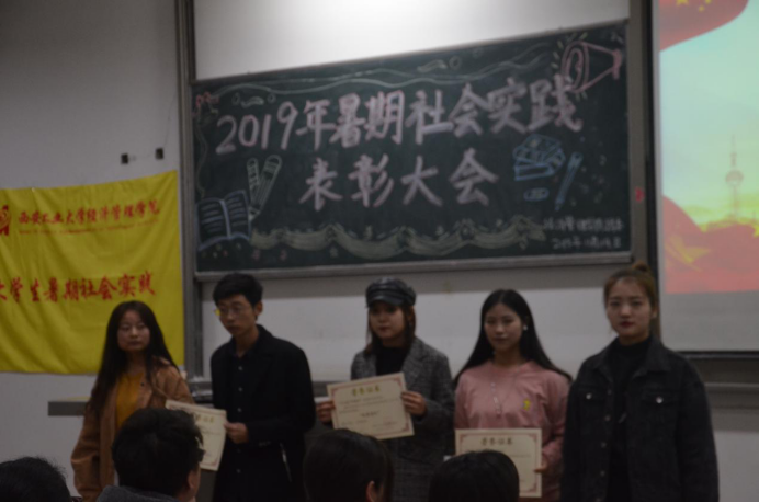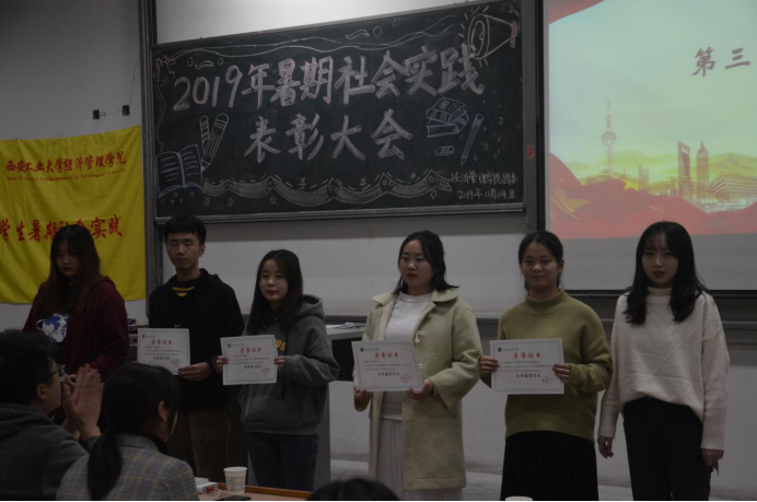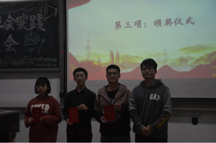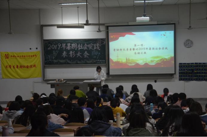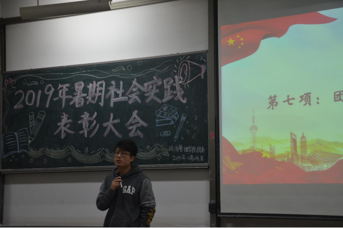 大会伊始,青协部长李素馨对本次社会实践进行总结报告,加深了同学们对社会实践活动的认识与理解。随后,由团委副书记马思聪学姐宣读表彰决定,本次大会重点表彰了院级社会实践优秀团队及个人。并由许金鑫老师和主席团为优秀团体和个人进行了颁奖,对他们的实践精神予以肯定。之后,社会实践优秀团队队长吴依阳、社会实践先进个人代表张晨卓进行了发言。接着大会进行了社会实践优秀DV展示,优秀的摄影作品带同学们领略了社会实践的精神风貌,为大家树立了榜样。大会最后,由许金鑫老师做了社会实践活动的总结,对获奖的个人和团队予以肯定,希望经济管理学院社会实践活动愈加丰富,希望更多的同学积极、认真地参与到暑期社会实践中,书写自己的实践故事。