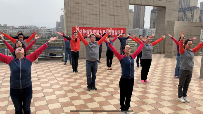 在3月19日~25日进行了第九套广播体操比赛。比赛以工会小组为单位,依据各小组选定时间,进行比赛视频录制。邀请学院体育部学生评委进行打分,最后办公室工会小组荣获一等奖,管理系工会小组、人力系工会小组分获二、三等奖。并选拔出优秀队员15名,参加我校2019年田径运动会开幕式表演。