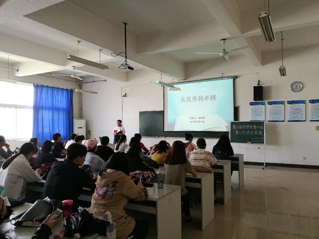 举办骨干班理论授课是深化学生干部素质培养的重要措施,用理论知识升华并武装学生干部。同时骨干班实践活动也在同步进行中,将理论和实践结合,培养学生干部的综合能力,推进学院工作的创新发展。