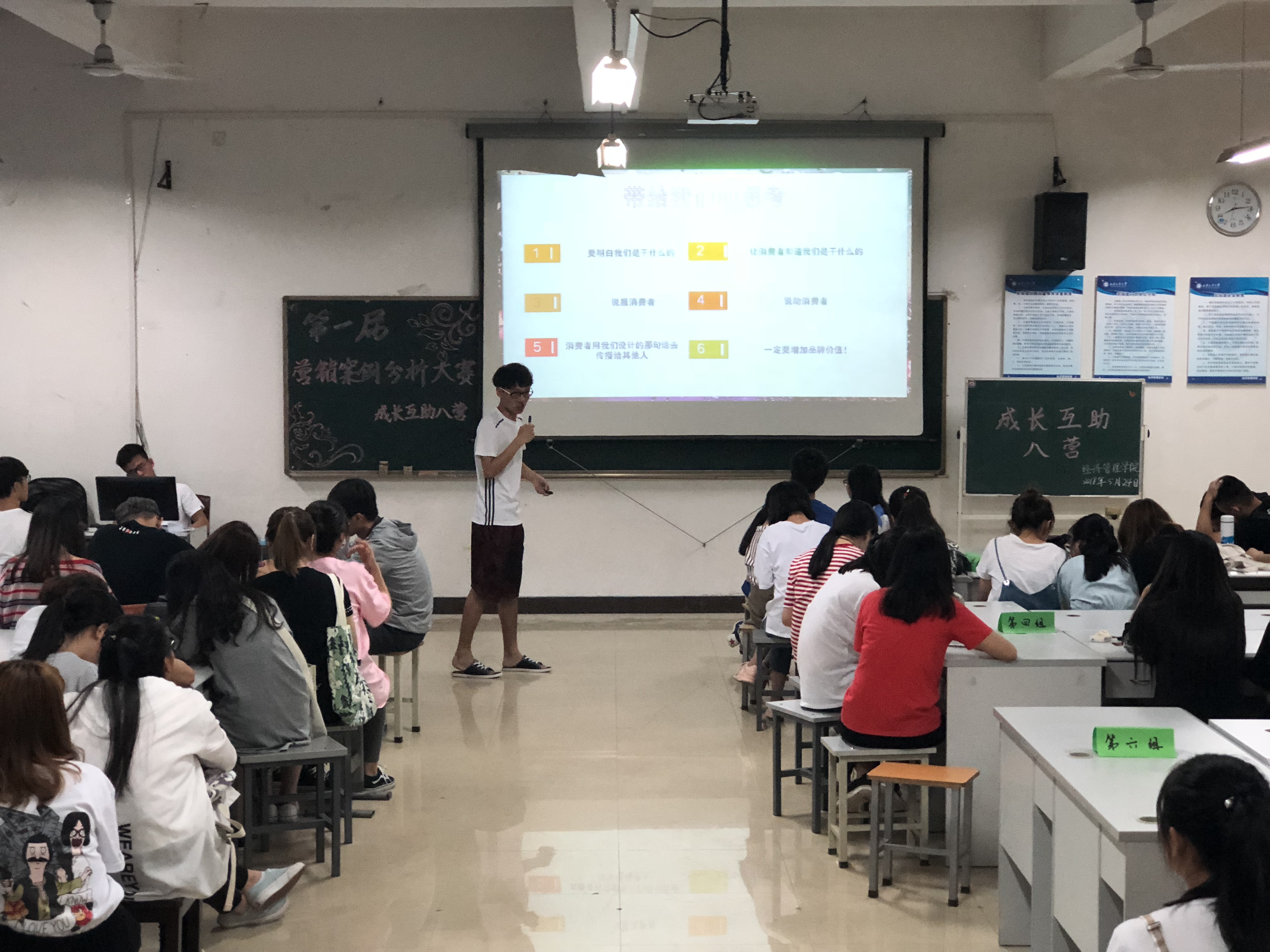成长互助八营主办的第一届营销案例分析大赛在教5-506火热开赛。成长互助八营指导老师牟雪艺和八营全体成员参与了此次大赛。