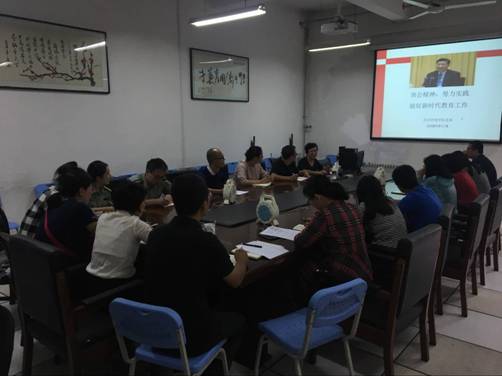 党委于9月14日早上在教5-520召开学习关于“习近平总书记在全国教育大会上讲话”的中心组学习,此次学习由党委书记曹玉玲主持,领导班子与各支部书记都一同参与讨论。