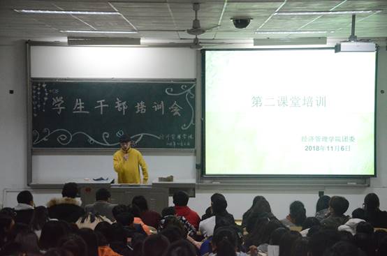 于11月6日晚18:30在教1-303举行学生干部培训会。团学组织各部门部长及全体干事参加了此次大会,办公室王唯一担任本次会议的主持人。