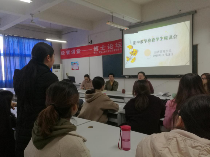 在教5—506召开期中教学检查学生座谈会。出席会议的有学院党委书记曹玉玲、辅导员组长曲峡、辅导员张玉玲、李会聪和教学秘书马琳,evolution平台