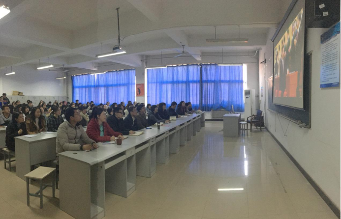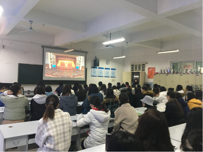 近百名教工和学生党员代表在教5楼506会计手工实验室通过新华社网络直播的形式集中收看庆祝改革开放40周年大会直播。