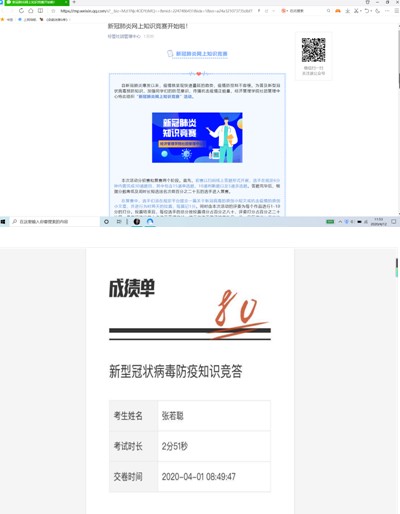 本次活动分为初赛和复赛两部分。初赛为新冠肺炎防疫知识网络竞答,共有30道题目限时6分钟来检验同学们对抗疫知识的了解程度,同学们通过扫描二维码参与答题活动并进入初赛QQ群。通过两天的初赛选拔,成绩靠前的52名同学进入复赛——撰写抗疫小短文,进行为期一天的线上评选,综合网络投票和评委投票评选出成绩靠前的十位选手。