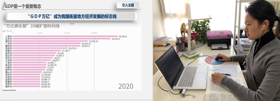 党晶晶老师用西安进入“GDP万亿俱乐部”的案例,展示西安高质量发展和社会主义制度的优越性,突如其来的疫情虽然对西安造成一定的经济损失,但数以万计的医护工作者、志愿者及人民众志成城,齐心协力,一定会打赢这场疫情阻击战!党晶晶老师鼓励学生封校不封爱,在线上学习中,要“加”经济知识堡垒之力、“减”谣言信息之失、“乘”先锋引领之行、“除”焦虑恐慌之心,充分发挥大学生社会责任感,用“抗疫”活教材传递正能量,同心抗疫、共克时艰。