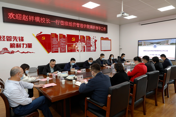 会前,赵校长对学院软科学基地、创新创业实训室进行实地走访调研。在座谈会上,苏院长围绕学院基本情况、2021年工作基本情况、下一步整体工作设想及2022年工作思路,目前存在的问题及解决思路进行了汇报。