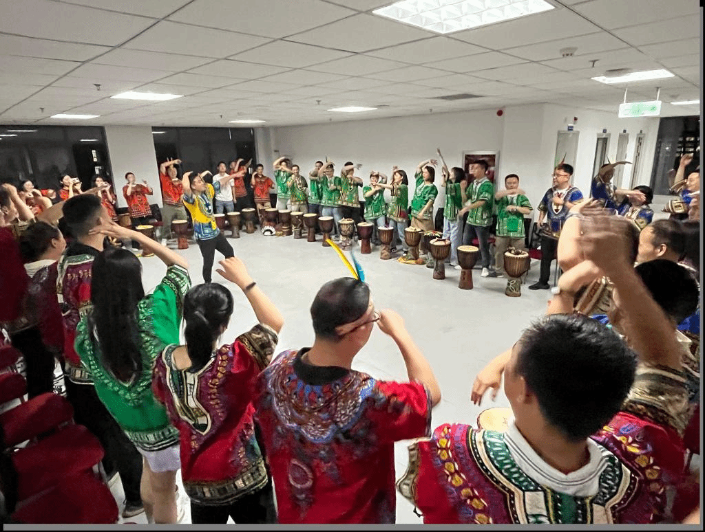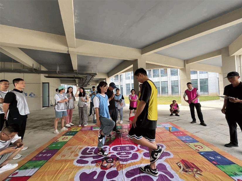 拓展活动以小组为单位,分为四个小组。为激发参与热情,加强彼此默契和信任,教练首先组织同学们进行熟悉组员、选出队长,设计小组队名、队歌、队旗、队形和口号等一系列破冰活动。随后,主要拓展活动通过“非洲鼓”“挑战150S”“大富翁”“鼓动人心”“纳斯卡巨画”五个项目展开。活动中,同学们表现出了高涨的热情、良好的协作精神以及旺盛的创造力。