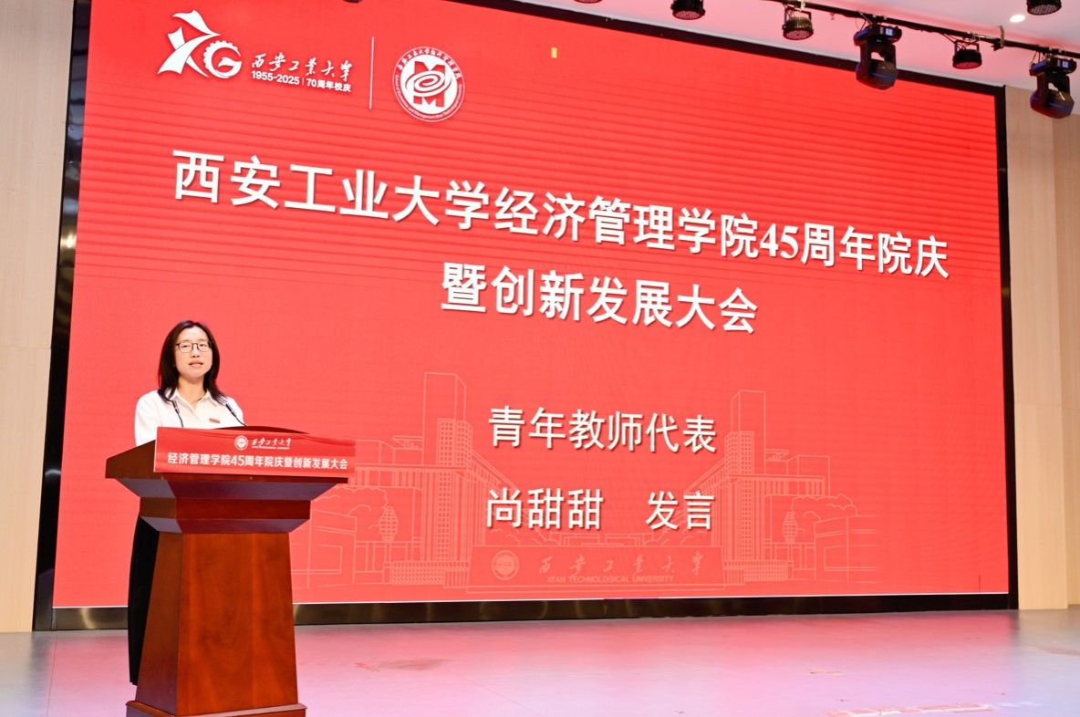 青年教师尚甜甜作为新生代教师代表铿锵表态:我们既是学院45年积淀的受益者,更是下一个45年新征程的开拓者,我们愿意以青春之力守护学院的四季常青,并以青春之名承诺:“弘扬兵工精神,扎根经管、不负时代,与学院共谱华章”。