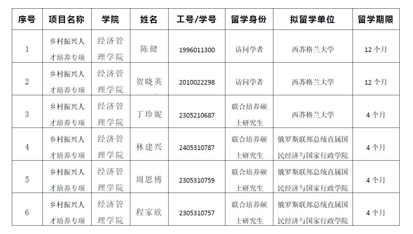 关于国家留学基金委2025年CSC乡村振兴人才培养专项推荐人选的公示