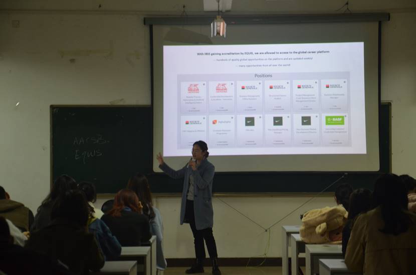 会议伊始,周老师从西交利物浦校园环境、育人模式、毕业去向等方面介绍了学校的基本情况,并重点介绍该校硕士课程特色和优势,以及硕士入学要求和申请条件。此外,周老师为同学们重点介绍了西交利物浦国际商学院——全球获得国际商学院联合会认证的最年轻商学院以及商学院内的各个专业及硕士专业认证。并以专业会计这一专业为例介绍了该院的雄厚的师资力量、特色课程设计以及广阔的就业领域。随后,周老师介绍了其学院于今年暑假开设的夏令营活动,其旨在为全国大学生提供一个高质量、多元化、国际化的平台。宣讲会结束后,同学们纷纷就自己关心的问题与老师们进行了进一步咨询。