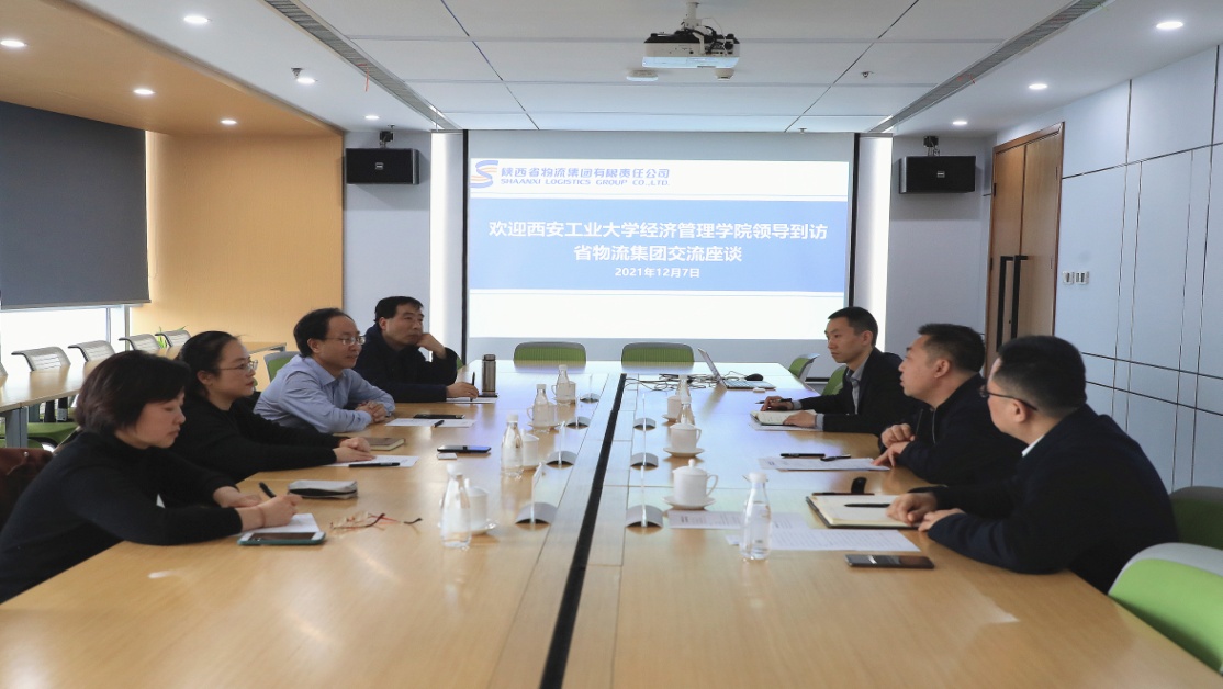 2021年12月7日下午,经济管理院副院长向海燕带领国家一流专业会计学专业负责人史璇、工商管理学科教工支部书记赵庚科、教师代表宣江平等教研团队赴陕西物流集团开展产学研合作调研交流学习,与陕西物流集团党委委员、财务总监梁林、财务资产部部长王录、副部长、资金中心主任朱炜等进行了座谈。
