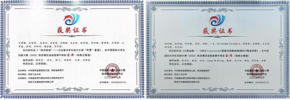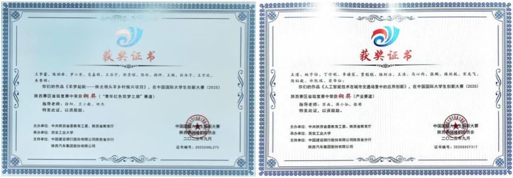 学生获陕西省一等奖2项,二等奖2项,三等奖2项。