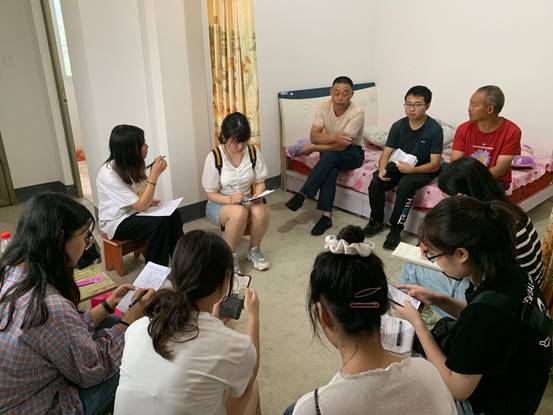 首先,村长肖光军介绍了当地贫困户的基本状况,圈腰村贫困户共28户,部分贫困户以全家种植茶叶或板栗出售到茶厂等脱贫,部分贫困户以国家补助及临时工作保障基本生活。其次,村长热情地带领实践队走访了一户精准扶贫户,通过村长的讲解及对该农户的访谈,队员们了解到,孤寡老人生活支出以国家补贴为主,种植茶业贩售及零工外快为辅。当地贫困户实行异地搬迁,无保户每月可获得500元补助,养老保险每年只需上缴100元,且村镇帮扶人每月平均2-3次到访帮扶家庭询问情况,扶贫政策落实良好。最后,通过队员的协商讨论,再次明确了精准扶贫,产业助农”旨在以产业助农,使有基本劳动能力农户自力更生,在脱贫基础上走上致富小康的道路。