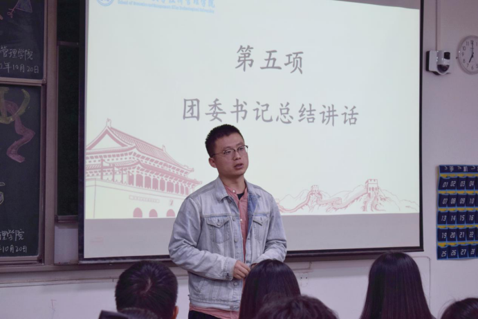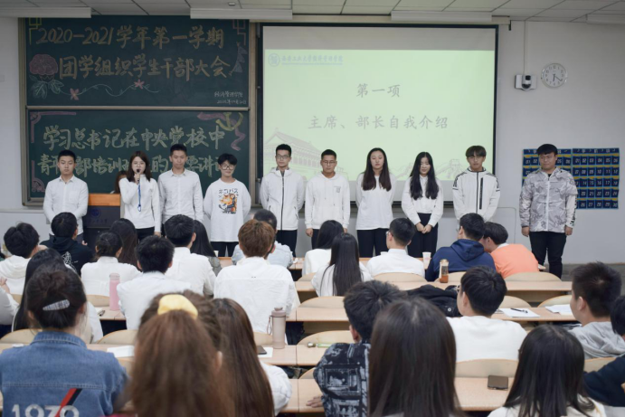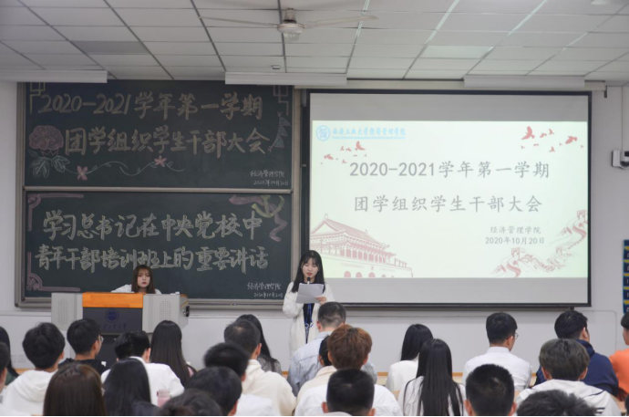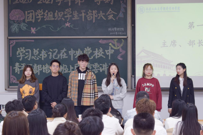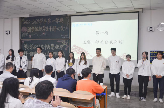 在教1-303举办2020—2021学年第一学期团学组织干部大会。出席本次大会的嘉宾有团委书记许金鑫。会议由张梦驰同学主持。