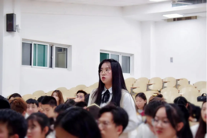 康怡同学以学习重要讲话内容展开,其中总书记强调:“年轻干部要起而行之、勇挑重担,积极投身新时代中国特色社会主义伟大实践,经风雨、见世面,真刀真枪锤炼能力,以过硬本领展现作为、不辱使命。”紧接着,在观看学习视频后,刘网玥作出分享,作为学生干部,更应该严格要求自己,敢想敢做,脚踏实地,不断解决问题,能干事,干成事。王传宇也分享了思想感悟,要将责任扛在肩上。