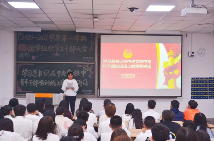组织全体团学干部“学习习近平总书记在中央党校中青年干部培训班上的重要讲话”。邀请了学院团委书记许金鑫及团学组织主席团。