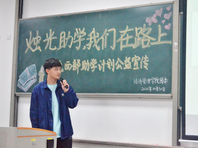 大会以该组织走访中国西部地区贫困学子的宣传视频展开,并邀请公益活动经历丰富的学生代表袁博发言,他表示,知识改变命运,而助学是公益的最好形式,关注公益,是每个现代公民应有的素质。最后,参会同学积极为西部欠发达地区学子写下自己的祝福并献上了爱心。
