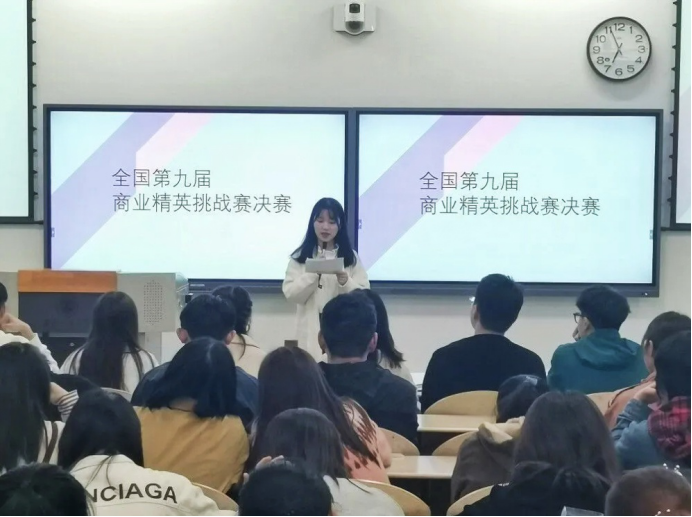于教2—103举行了“第九届全国商业精英挑战赛决赛”。本次活动由张梦驰主持。