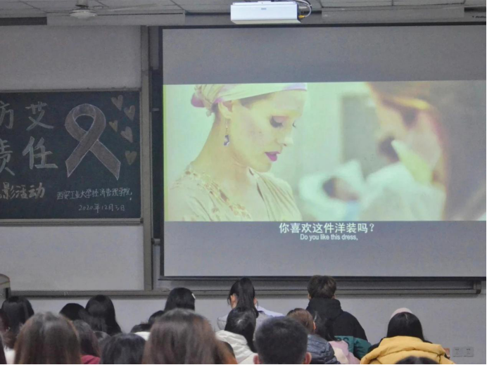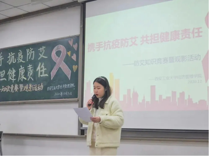 在教1-103举办防艾知识竞赛暨观影活动。活动由青协理事罗舒涵主持。