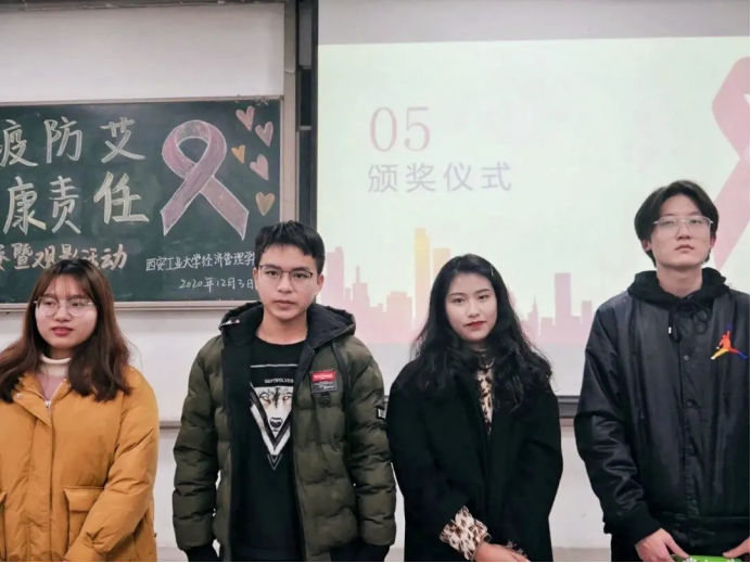 活动伊始,主持人介绍了艾滋病的相关知识,并通过播放宣传片《生无畏》使同学们进一步的了解世界艾滋病日的意义。紧接着,防艾知识竞赛正式开始,参赛人员以小组为单位限时十分钟答题,并设立奖项一、二、三等奖共六组。随后,大家共同观看有关艾滋病的影片《达拉斯买家俱乐部》。最后,团委副书记卢红升为获奖小组颁奖。