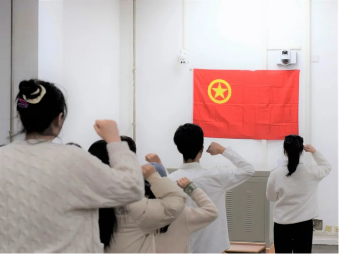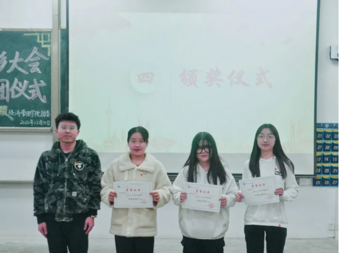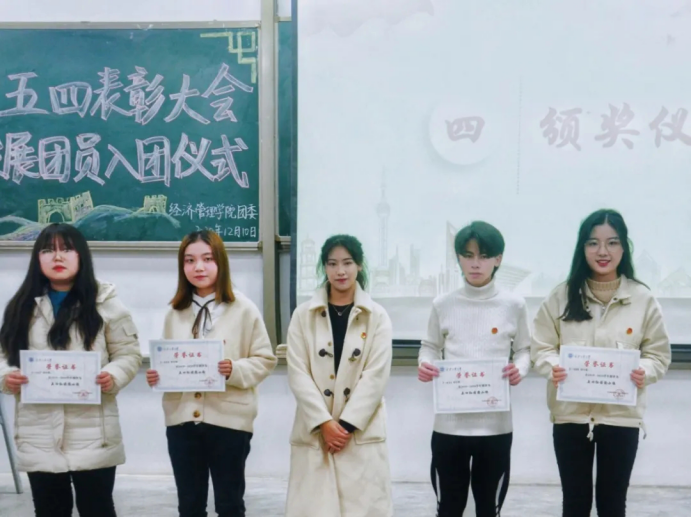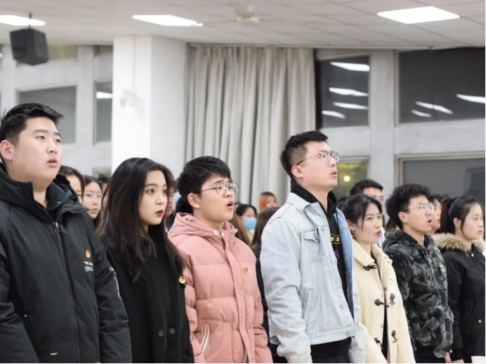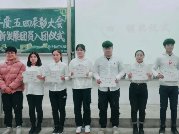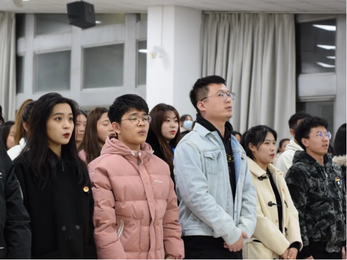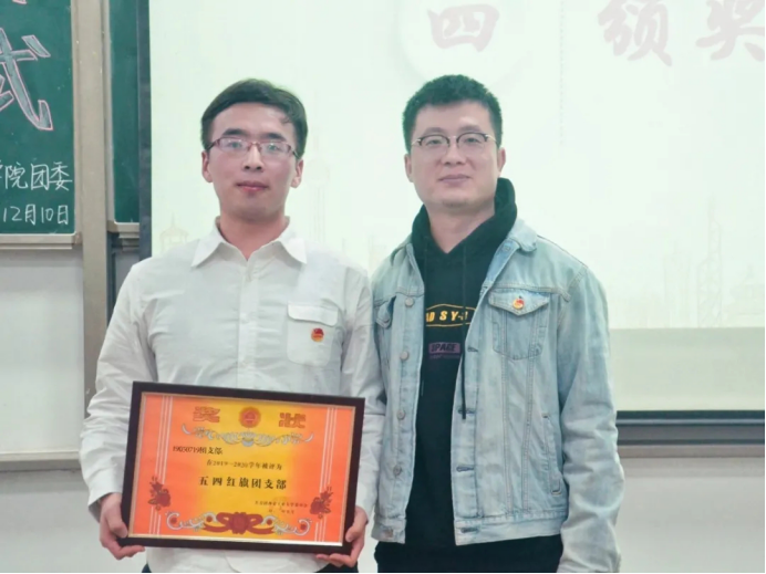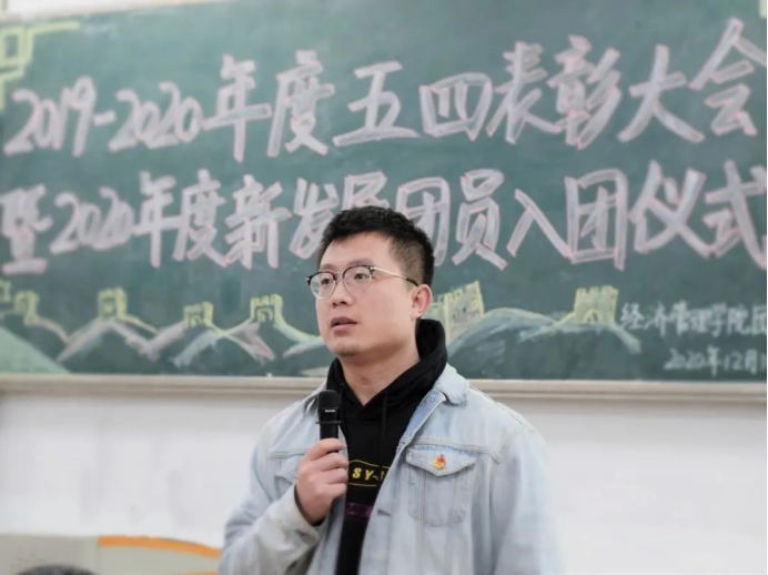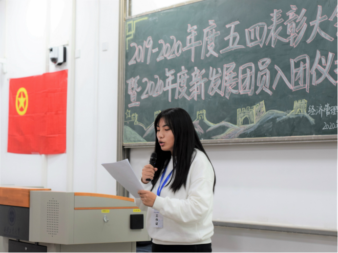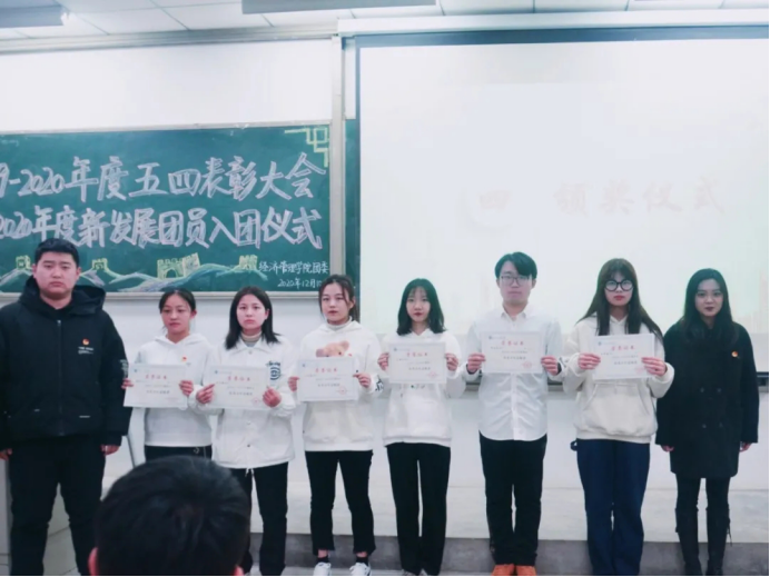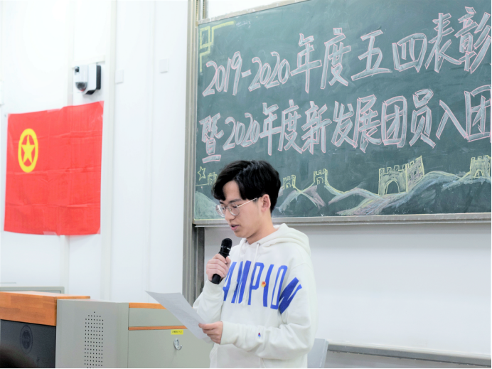 在教1-104召开2019-2020年度五四表彰大会暨新发展团员入团仪式,出席本次的嘉宾有团委书记许金鑫。会议由组织部温迪主持。