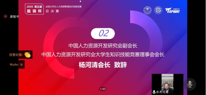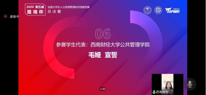 由中国人力资源开发研究会主办、西南财经大学承办、上海踏瑞计算机软件有限公司提供技术支持的第五届全国大学生人力资源管理知识技能竞赛总决赛于12月5日在线上拉开帷幕。