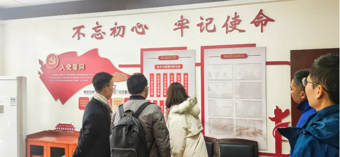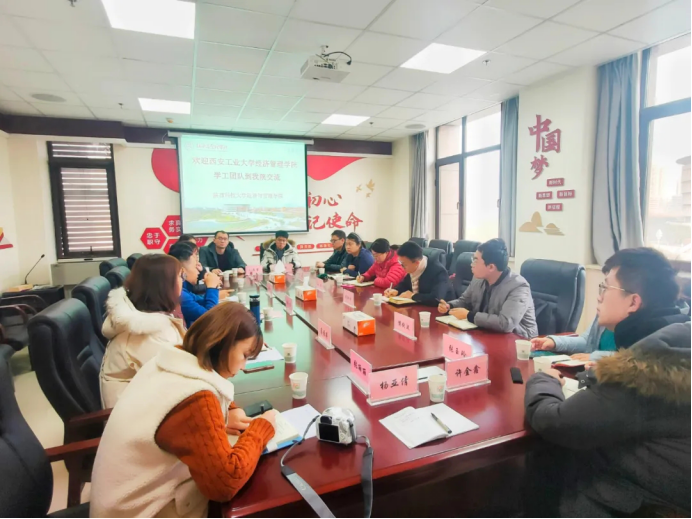 学工干部参观了陕西科技大学经济与管理学院的党建活动室、学工办公室、团学活动室,学工干部们就一些具体工作问题进行一对一交流。