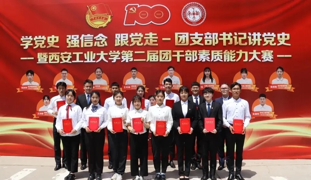 为贯彻落实中央党的群团工作会议精神和全国高校思想政治工作会议精神,提升高校团干部的理论水平、专业素养和工作能力,全面加强基层团组织建设,打造信念坚定、品学兼优、 朝气蓬勃的共青团干部队伍。5月18日,“学党史 强信念 跟党走”——西安工业大学团支部书记讲党史暨西安工业大学第二届团干部素质能力大赛决赛在图书馆报告厅举行。