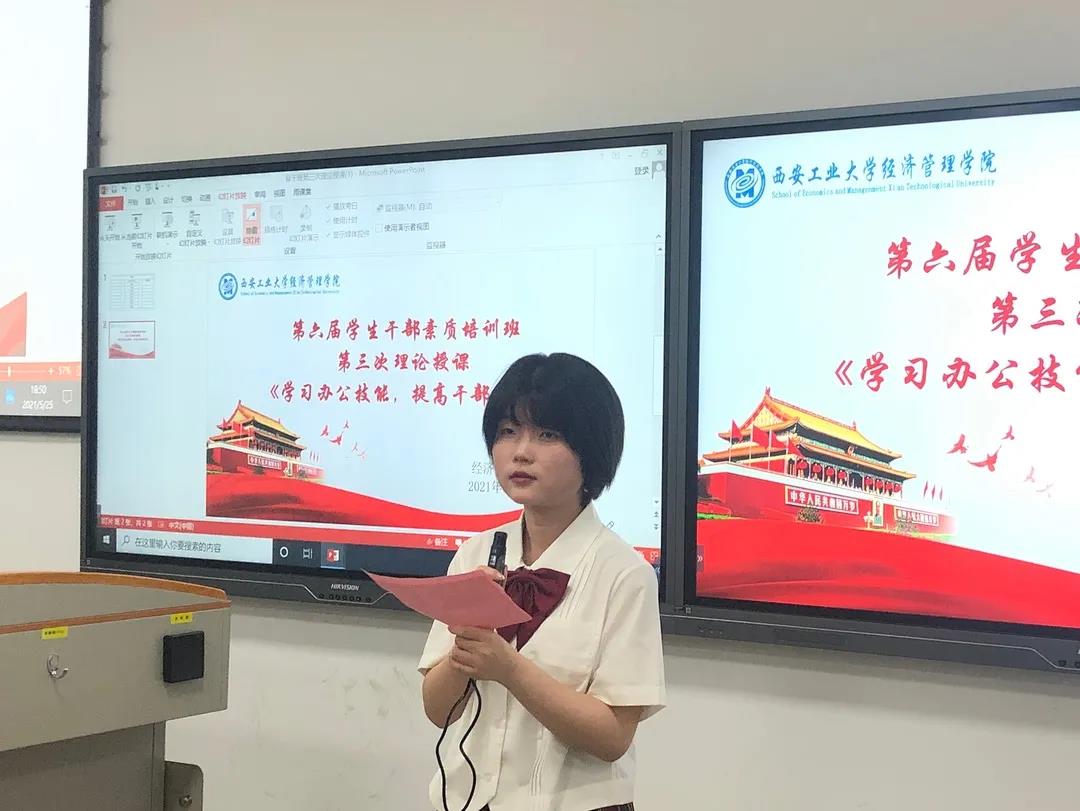 5月25日晚于教二106开展了第六届学生干部素质培训班第三次理论授课——学习办公技能,提高干部水平。本次大会由杨莎主持。